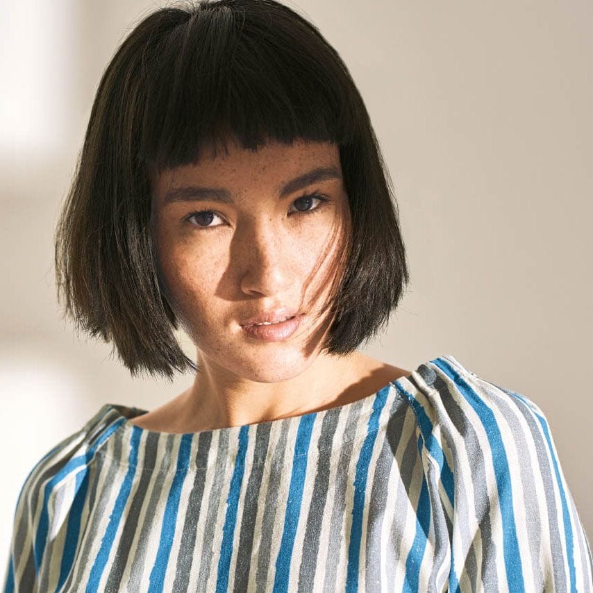 Blusa media manga mujer con rayas verticales.